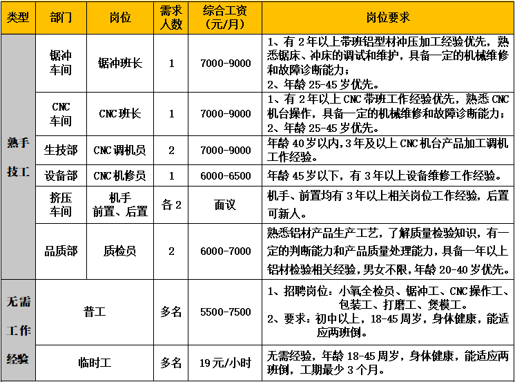 因生產(chǎn)發(fā)展需要,誠(chéng)聘以下崗位: