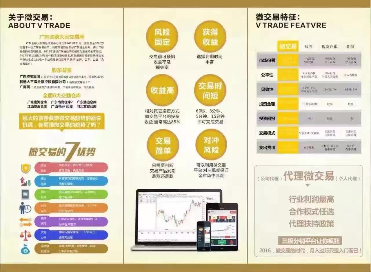 微交易,是金融交易創(chuàng)新品種。特點(diǎn)是簡(jiǎn)單,快捷。微交易是基于一種標(biāo)的資產(chǎn)在規(guī)定時(shí)間內(nèi)(例如未來(lái)的一分鐘、十分鐘、三十分鐘、一小時(shí)等)到期價(jià)格是低于、等于還是高于執(zhí)行價(jià)格(下單價(jià)格)的結(jié)果,決定是否獲得收益。